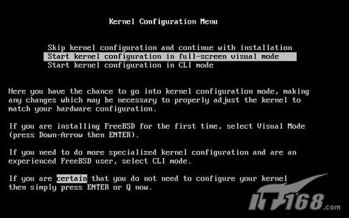 Sysinstall程序是一个对话框方式的菜单程序,不同于Windows系统中安装程序常用的 “Wizard” 引导方式的安装形式,菜单形式能提供安装者更大的选择自由,但需要安装者对需要用到的选项有一定的了解。