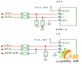 S3C2410A集成了USB host和USB device,外部连接电路如下图: