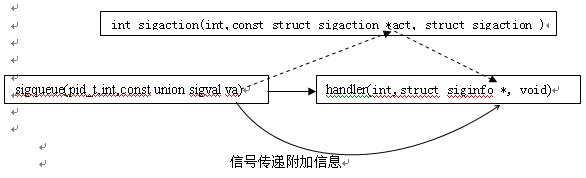 采用联合数据结构,说明siginfo_t结构中的 si_value要么持有一个4字节的整数值,要么持有一个指针,这就构成了与信号相关的数据。在信号的处理函数中,包含这样的信号相关数据指针,但没有规定具体如何对这些数据进行操作,操作方法应该由程序开发人员根据具体任务事先约定。