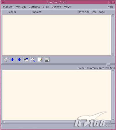 邮件程序是用于发送、接收和管理电子邮件 (email) 的应用程序。它完全集成在桌面中,使您可以在邮件程序和其它应用程序之间拖放邮件和文件。电子邮件(E-mail)很早就在Solaris系统上得到了支持,不仅支持本地用户,还支持远程用户。CDE提供了一种方便用户的E-mail客户端程序称作dtmail。该dtmail程序的界面如图1。根用户的收件箱显示在顶部面板中,该用户有几条信息,第一条已经显示在底部的窗口中(这条消息显示cron时间表工具产生了一个错误)。